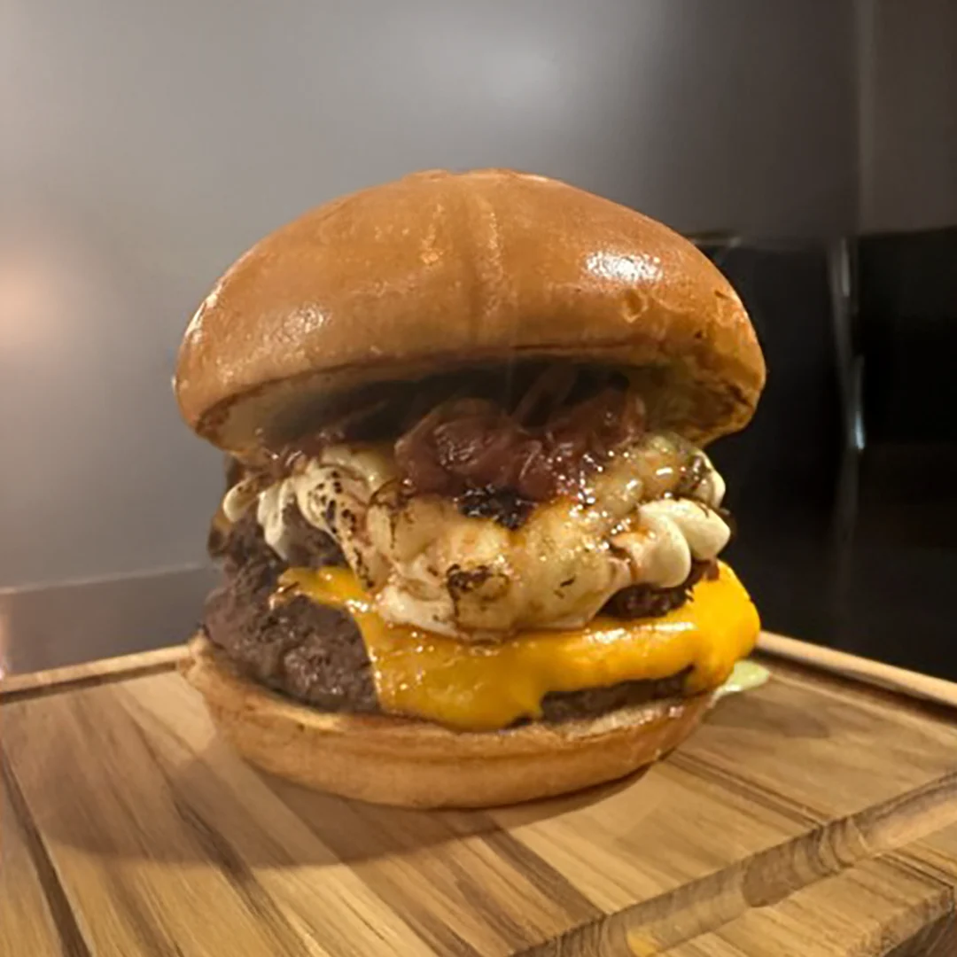 Pão especial, blende 150gr, mussarela, camarão grelhado ao molho de crem cheese, molho especial, alface e tomate.